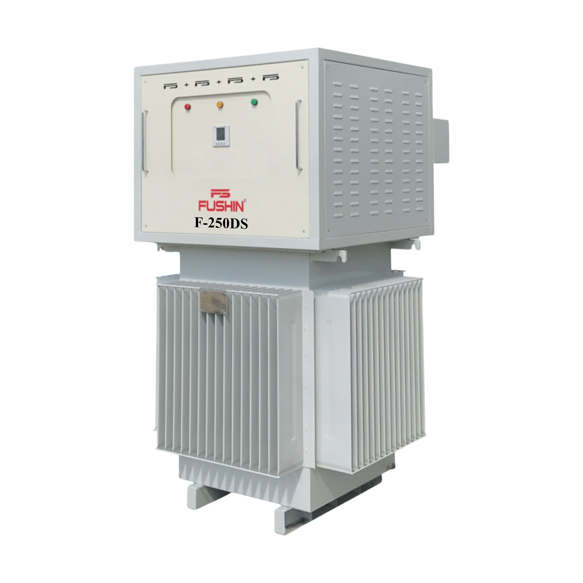 Ổn áp 3 pha ngâm dầu 250kVA FUSHIN là giải pháp ổn định điện áp 3 pha cao cấp, thiết kế chuyên biệt cho hệ thống điện công nghiệp và các tải dân dụng lớn. Với cấu trúc ngâm dầu cách điện chuyên dụng, thiết bị nổi bật nhờ khả năng tản nhiệt siêu tốc, đảm bảo máy vận hành êm ái, bền bỉ và ổn định hơn hẳn ổn áp khô truyền thống.